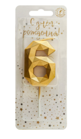 Свеча для торта на шпажке «Многогранник» с цифрой 6 — служит для украшения праздничного торта.