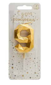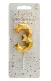 Свеча для торта на шпажке «Многогранник» с цифрой 3 — служит для украшения праздничного торта.