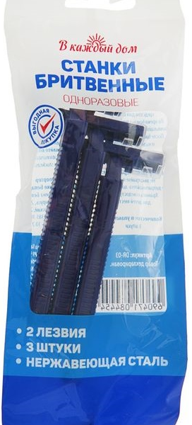Станки одноразовые для бритья мужские "В каждый дом". 2 лезвия, нержавеющая сталь, 3 штуки в упаковке.