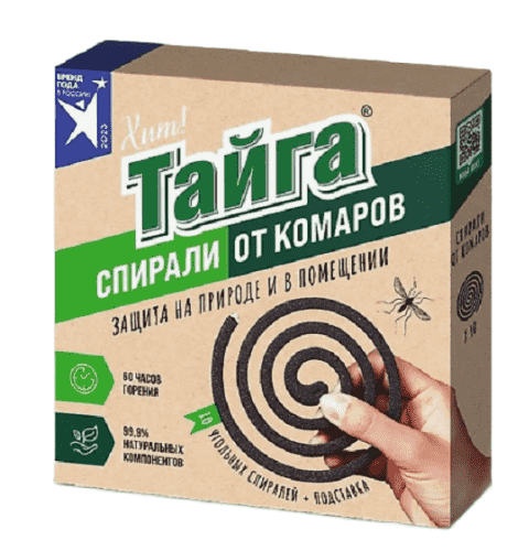 Спирали от комаров и мошек «Тайга» предназначены для защиты от летающих насекомых: комаров, мошек, мокрецов и москитов. Средство подходит для использования на открытом воздухе и в хорошо проветриваемых помещениях.