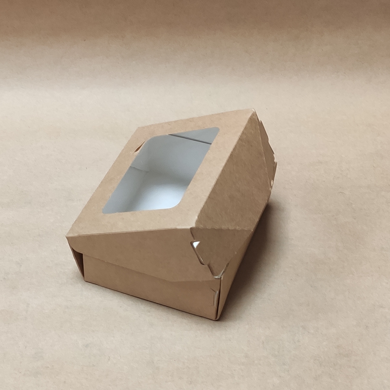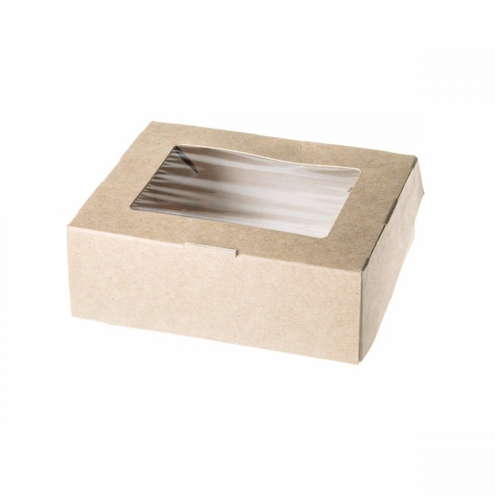 Контейнер из целлюлозного крафт-картона с окном. Размер: 100*80*35мм. Подходят для десертов, суши, роллов, фастфуда, “еды на вынос”. Возможно использовать в СВЧ.