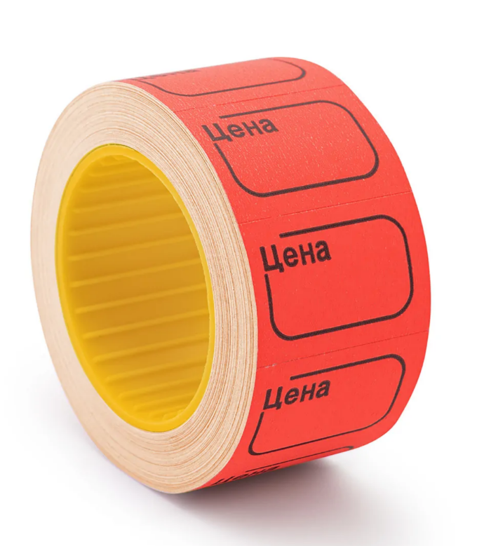 Этикет-лента красного цвета, размер 21,5*12мм, предназначена для быстрого и удобного нанесения необходимой информации на товар. Распространенный элемент для любого традиционного предприятия торговли.