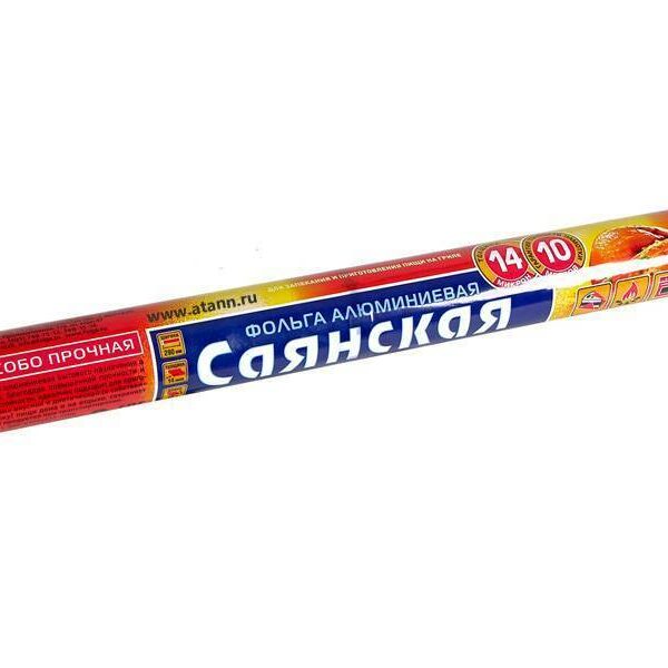 Фольга Саянская - это удобный материал для запекания и хранения продуктов: обладает прочностью, непроницаема для влаги и жира. Сохраняет свежесть продуктов и защищает их от посторонних запахов, пыли.