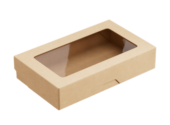 Контейнер из целлюлозного крафт-картона с окном. Размер: 260*150*40мм. Подходят для десертов, суши, роллов, фастфуда, "еды на вынос". Возможно использовать в СВЧ. В коробе 125 шт.