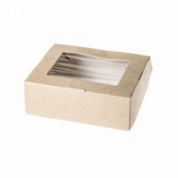 Контейнер из целлюлозного крафт-картона с окном. Размер: 100*80*35мм. Подходят для десертов, суши, роллов, фастфуда, "еды на вынос". Возможно использовать в СВЧ.