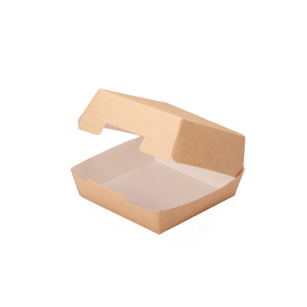 Картонная упаковка для гамбургеров. Допускается разогрев в СВЧ. Устойчива к промасливанию. Идеально для фастфуда. Удобна для транспортировки. В коробе 150 шт.
