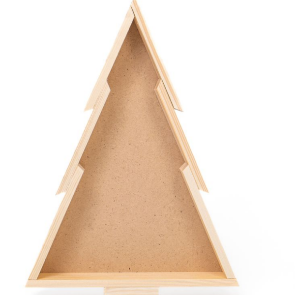 Оригинальная праздничная упаковка, ящик из дерева, в форме елки. Размер 34*23*4 см.