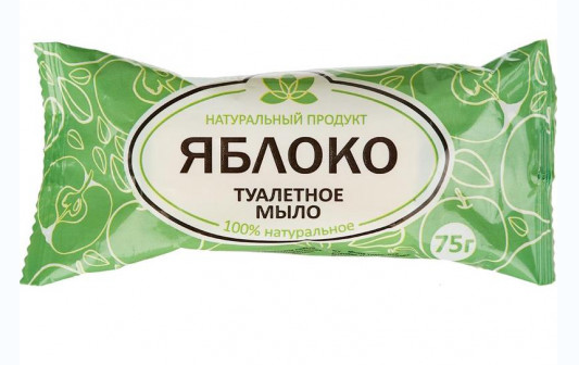 Мыло туалетное твердое глицериновое 75гр. Приятный аромат яблока. Бережно очищает кожу.