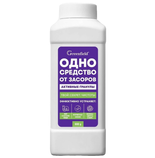 Чистящее средство Greenfield-Крот для труб предназначено для чистки канализационных труб — ванн, раковин, унитазов и других водостоков.