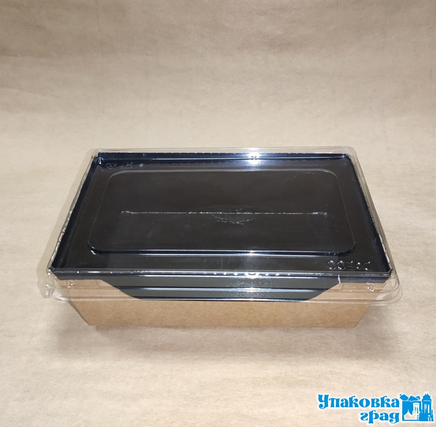 Контейнер бумажный универсальный для вторых блюд с широкой прозрачной плоской крышкой. Подходит как для холодных, так и для горячих готовых продуктов. В коробе 300 шт.