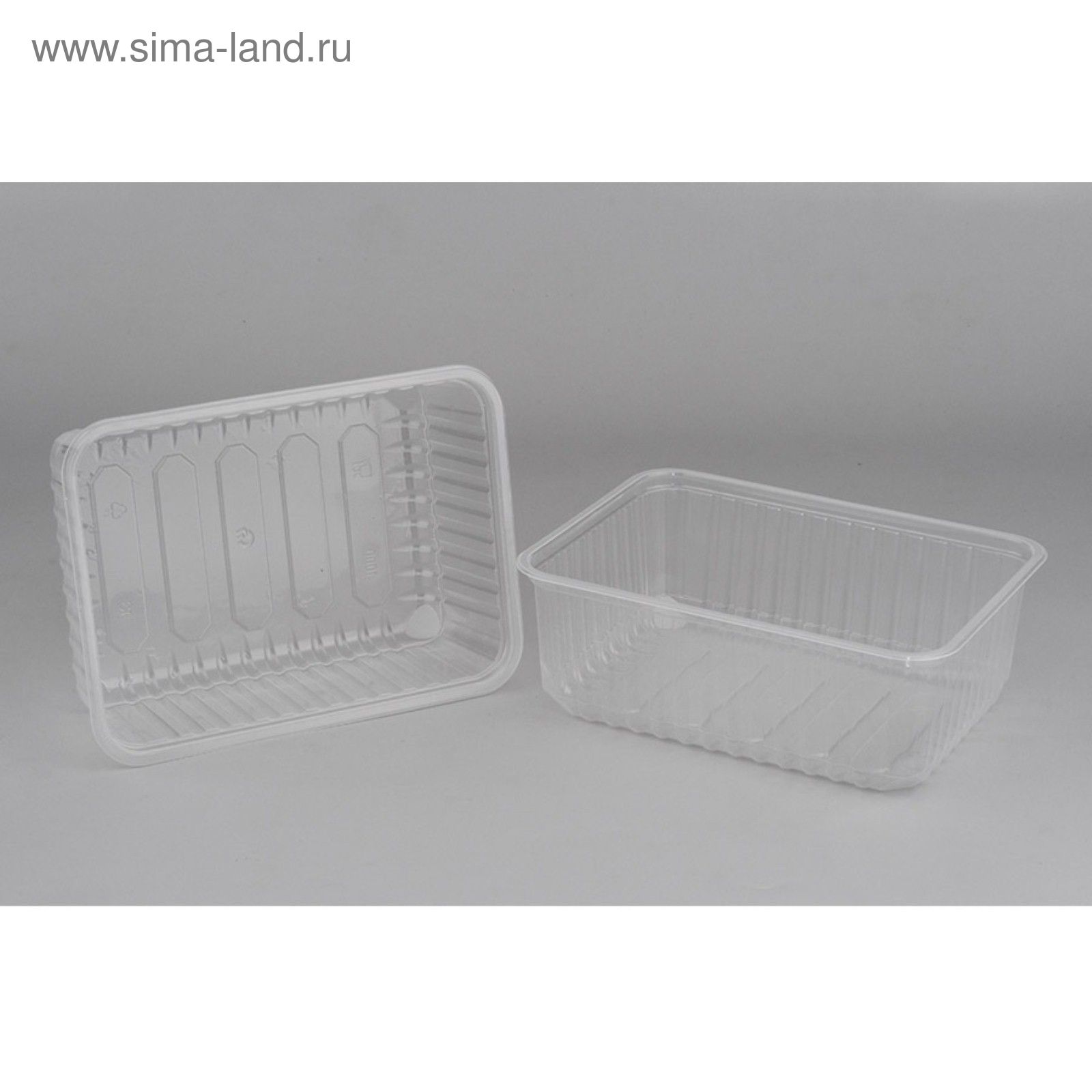 Прозрачный прямоугольный контейнер с крышкой предназначен для фасовки продуктов питания. Возможно использование в холодильнике и СВЧ. В коробе 500 шт.