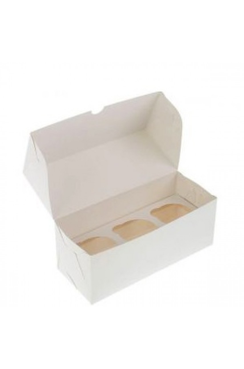 Коробки для 3-х маффинов размером 250×100×100 мм, могут использоваться для упаковки и доставки десертов, кондитерских изделий.