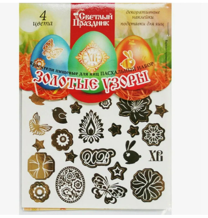 Набор Пасхальный для яиц состоит из пищевых красителей и наклеек. Красители помогут оформить яйца в красивые цвета. А украшение с помощью наклеек сделает оригинальный акцент.