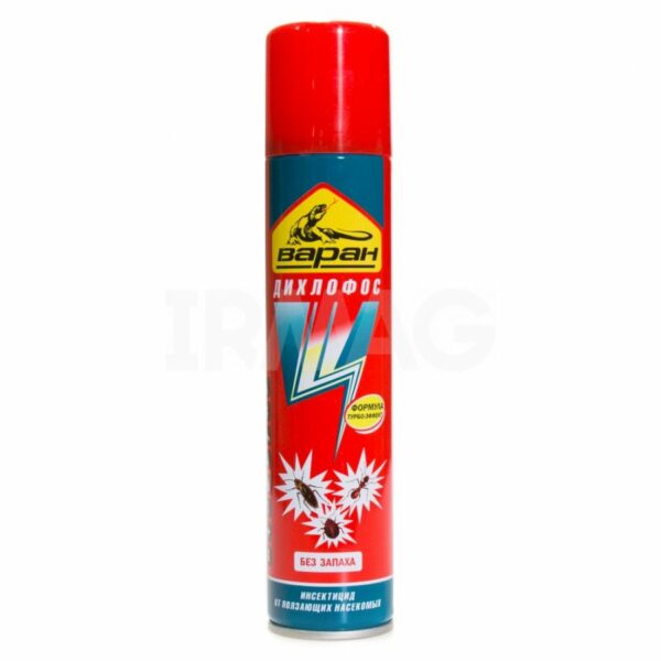 «Дихлофос Варан» в форме аэрозоля объёмом 190 мл предназначен для уничтожения летающих насекомых: мух, комаров, мошек, москитов, бабочек моли.