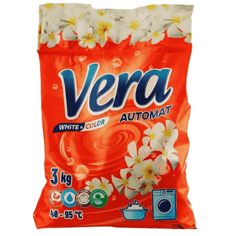 Универсальный стиральный порошок «Вера-автомат» используют для стирки белого и цветного белья в автоматических стиральных машинах и машинах активаторного типа, а также для ручной стирки изделий из хлопчатобумажных, льняных, синтетических тканей, а также тканей из смешанных волокон (кроме изделий из натурального шёлка и шерсти).