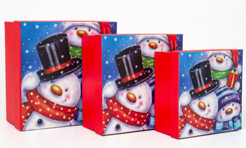 Набор коробок НГ 3в1 квадрат 20*20*9,5/15,5*15,5*7,5см Веселые снеговики