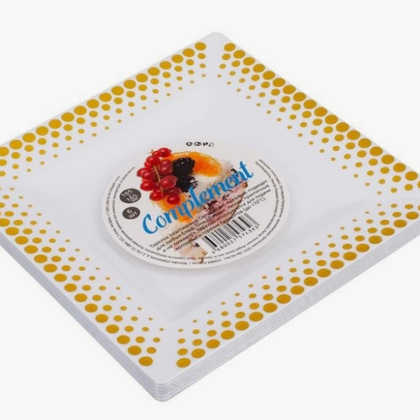 Тарелка пластик 165*165 квадрат золото Complement 6шт/уп/20