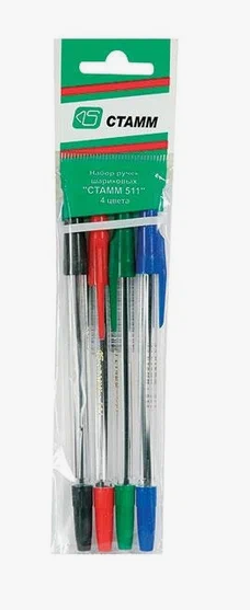 Набор шариковых ручек 4 штуки, 4 цвета: синий, красный, зеленый, черный. Толщина пишущего узла 0,7мм