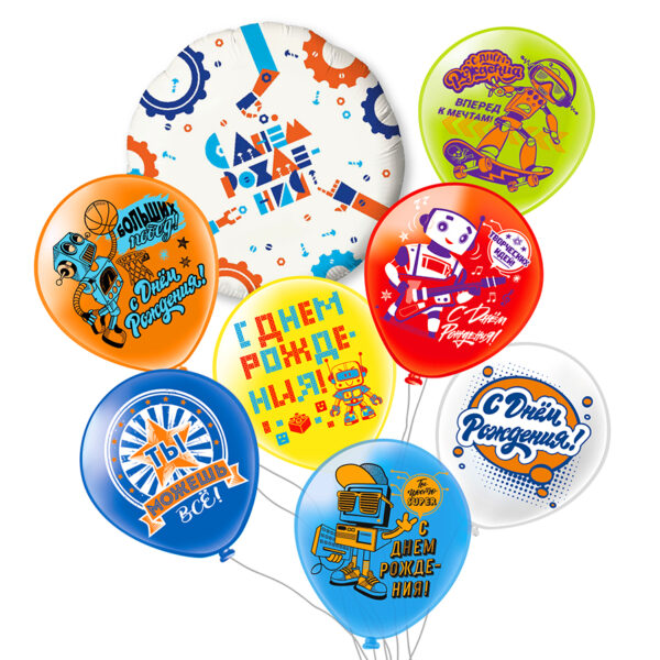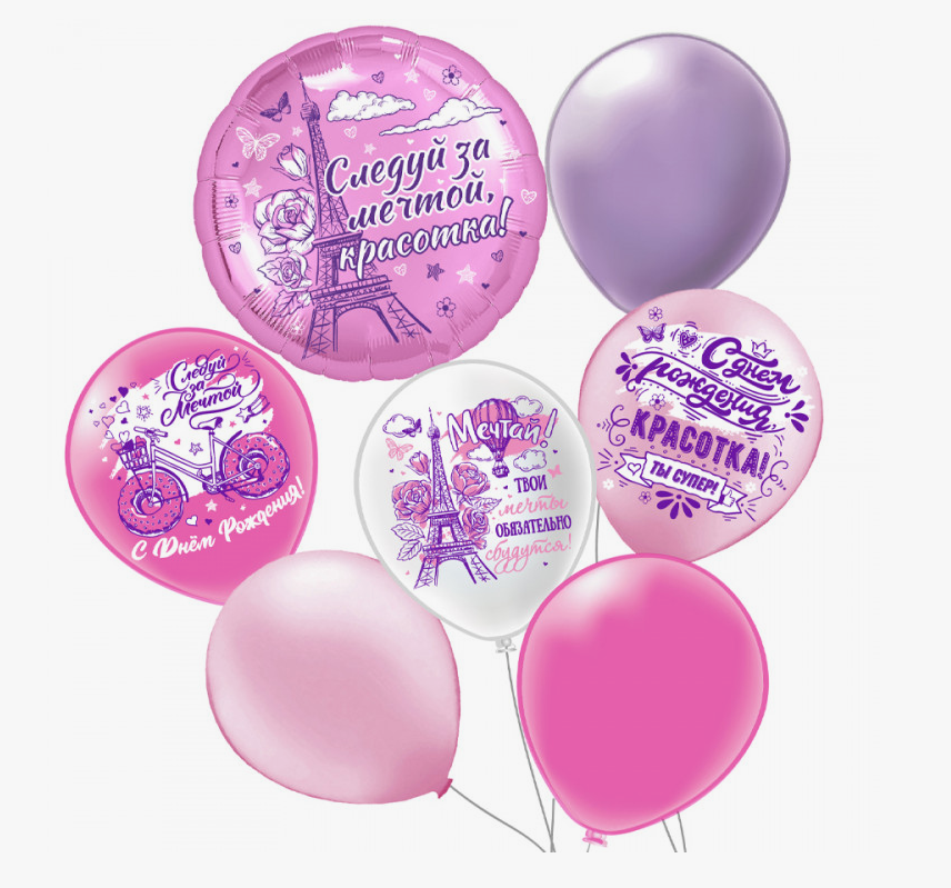 Набор шаров 8шт Букет СДР! Цветочки (1фольга+7латекс/рис)