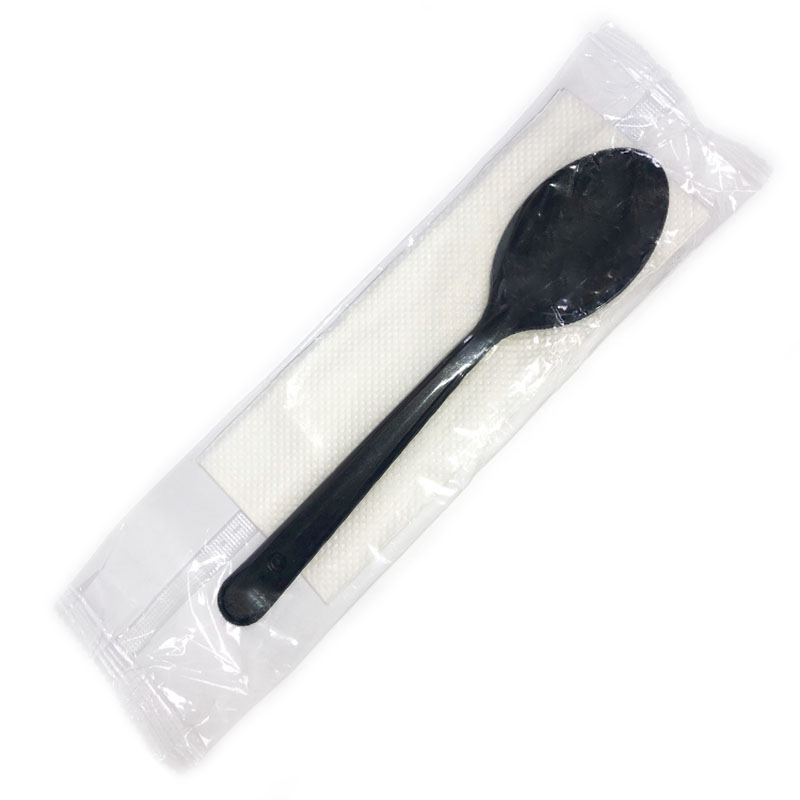 Набор одноразовых столовых приборов: ложка, салфетка. Упакован у прозрачную пленку.Эффективно используется в кафе, столовых, пунктах быстрого питания, в путешествиях, загородных поездках.