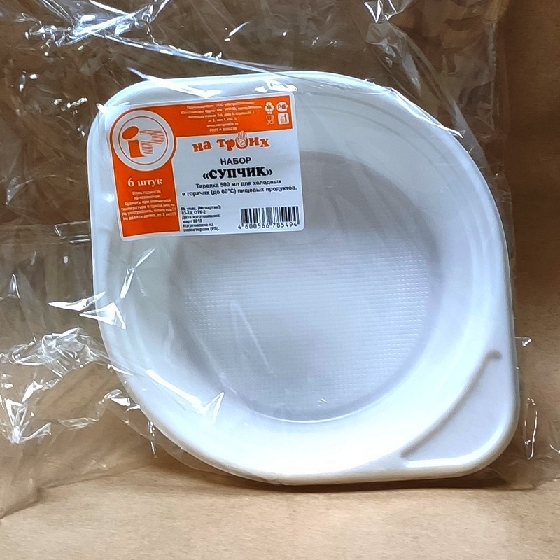 Набор одноразовой посуды “Супчик” 6 штук: тарелка 500мл подходит для холодных и горячих пищевых продуктов. Используется в пунктах быстрого питания, на разных мероприятиях, в походах, на пикниках.