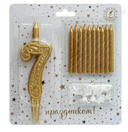 Набор свечей классическое золото для торта с цифрой 9 + 10 свечей с подставкой — служит для украшения праздничного торта.