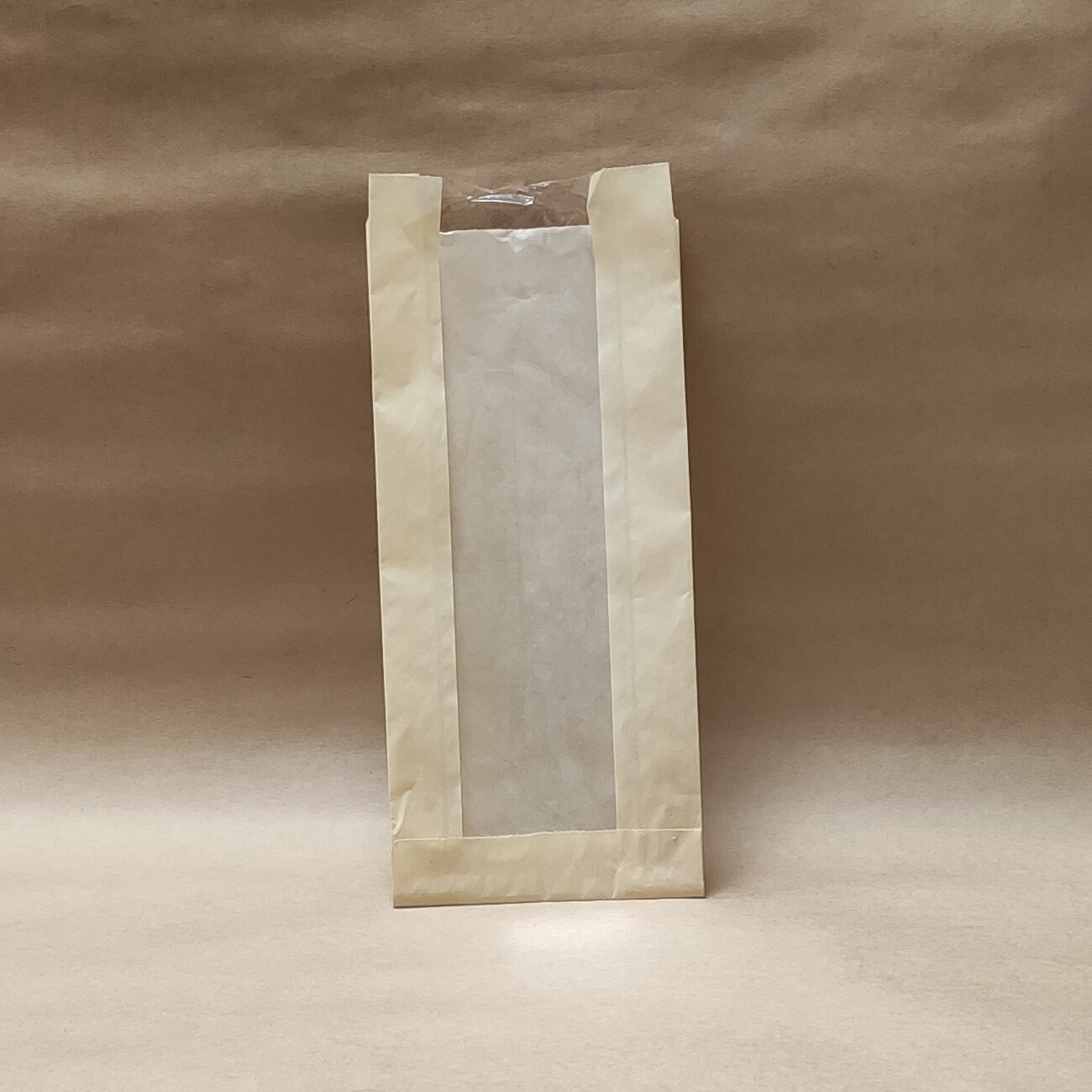 Пакет бумажный 110*40*260см с окном бежевый. Используется для упаковки и хранения кондитерских изделий, продуктов питания, товаров разных групп. Продается упаковкой по 100 штук.