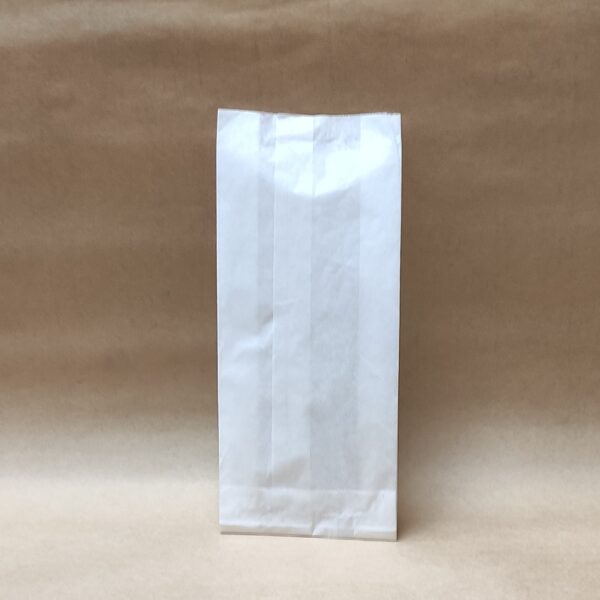 Пакет бумажный с окном. Размер 170*100*80*300 мм. Используется для упаковки хлебобулочных изделий. Выпечка, помещенная в такой полупрозрачный пакет, выглядит более аппетитно.