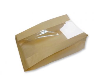 Пакет бумажный с окном. Размер 140*90*240 мм. Используется для упаковки хлебобулочных изделий. Выпечка, помещенная в такой полупрозрачный пакет, выглядит более аппетитно.