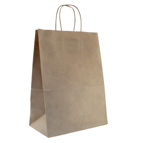 Бумажный пакет размером 260×150×350 мм с кручёными ручками используют для хранения и переноски продуктов питания и других бытовых товаров.Благодаря плотной бумаге пакет обладает высокой прочностью и отлично держит форму.