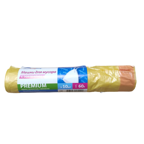 Пакет д/мусора с зав 60л*10шт*30мк ВД Желтый 30мк /30/ 9012