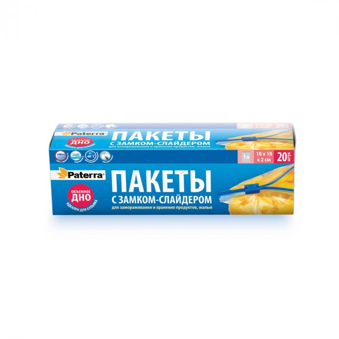 Пакет д/заморозки и хран. со слайдером 18*18*2см 1л 20шт/24 Патерра