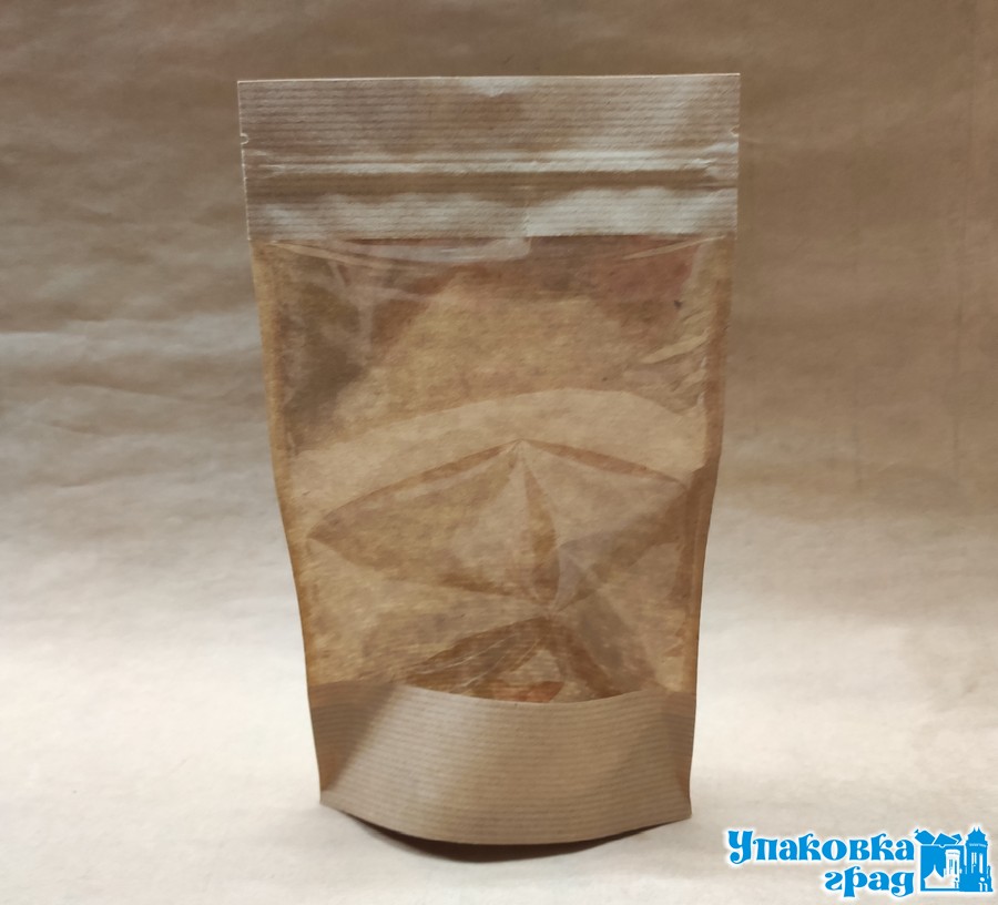 Пакет дой-пак 120*185мм Крафт окно 100мм зип-замок 60г/м2 /100/