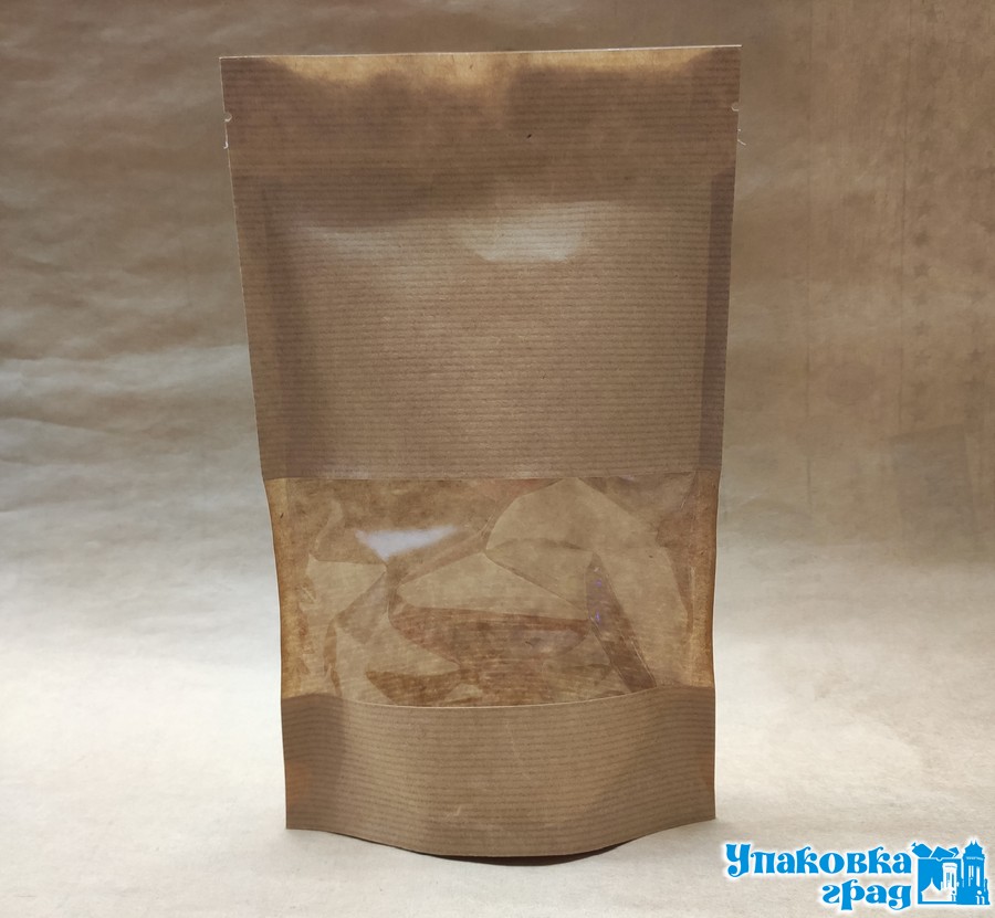 Пакет Дой-Пак 140*225+(40+40) бум. Крафтс замком с больш.окном 100/700шт