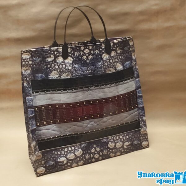 Пакет ламинированный многослойный с оригинальным дизайном. В дно пакета впаяна надежная вставка, которая усиливает прочность и дает возможность поставить его при необходимости. Пакет легко сложить и взять с собой в сумочку. Он прочный, надежный, выдерживает содержимое до 20 кг.