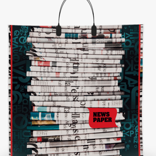 Пакет ламинированный многослойный с оригинальным дизайном. В дно пакета впаяна донная складная вставка, которая усиливает прочность и дает возможность поставить его при необходимости, внутри и снаружи есть пара карманов. Пакет легко сложить и взять с собой в сумочку.