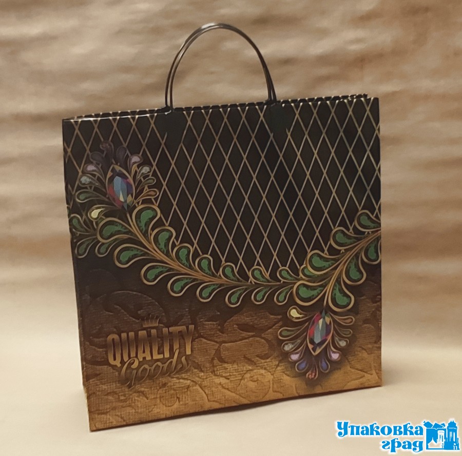 Пакет с пластиковой ручкой, размер 36*34*5 см. Красивый плотный пакет подходит для использования в быту и как подарочная упаковка.