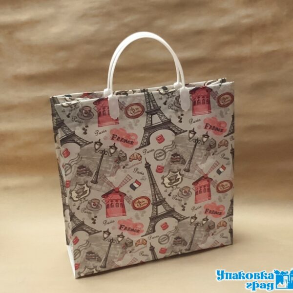Пакет ламинированный многослойный с оригинальным дизайном. В дно пакета впаяна надежная вставка, которая усиливает прочность и дает возможность поставить его при необходимости. Пакет легко сложить и взять с собой в сумочку. Он прочный, надежный, выдерживает содержимое до 20 кг.