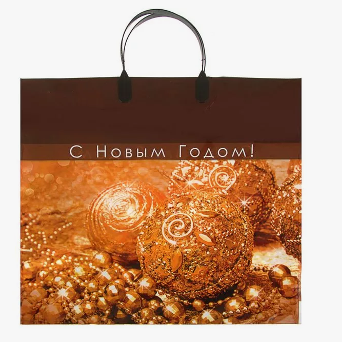 Пакет новогодний праздничный с пластиковой ручкой, размер 38*35*10 см. Красивый плотный пакет подходит для использования в быту и как подарочная упаковка. Продается по 10 штук.