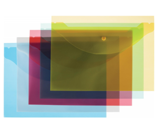 Папки-конверты формата А5 с кнопкой из пластика предназначены для хранения и переноски документов, небольших предметов, письменных принадлежностей. Такие папки изготавливаются из полипропилена, имеют застёгивающийся клапан с одной стороны.