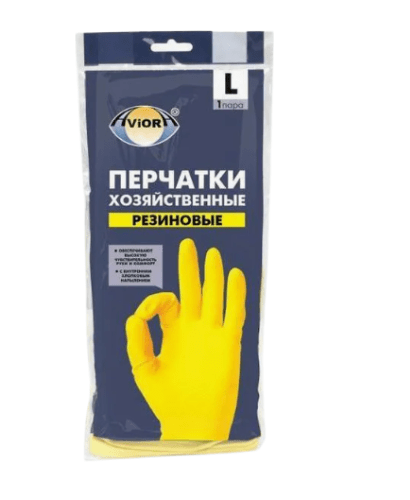 Хозяйственные резиновые перчатки AVIORA размера L предназначены для защиты рук во время уборки, дезинфекции, стирки, садовых, ремонтных и строительных работ.