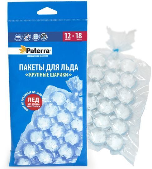 Пакеты для льда "Крупные шарики" - 216 шариков правильной формы. Лед без посторонних запахов. Пакеты сверхпрочные - 18 мкм, качественные перемычки, удобные завязки.