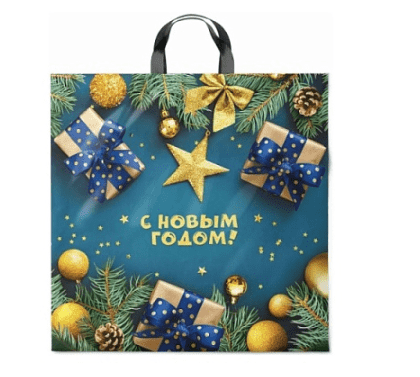 Новогодний пакет с петлевой ручкой 60*50см, 70мк. Используется для упаковки подарков, различных товаров. Продается по 25 штук.