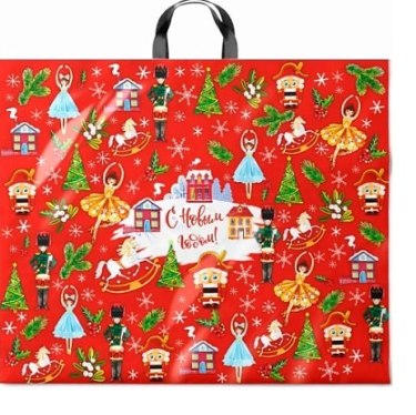 Новогодний пакет с петлевой ручкой 40*42см, 45мк. Используется для упаковки подарков, различных товаров. Продается по 25 штук.