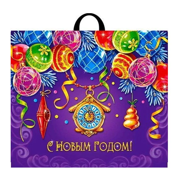 Новогодний пакет с петлевой ручкой 71*55см, 90мк. Используется для упаковки подарков, различных товаров. Продается по 25 штук.