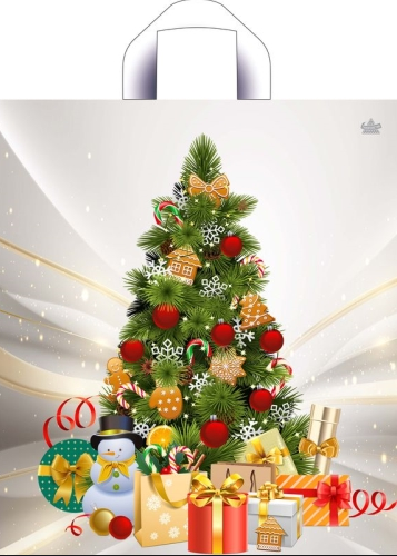 Новогодний пакет с петлевой ручкой 40*42см, 45мк. Используется для упаковки подарков, различных товаров. Продается по 25 штук.