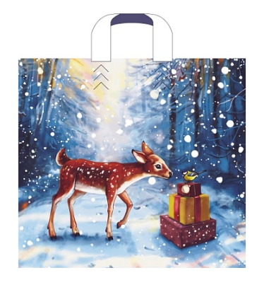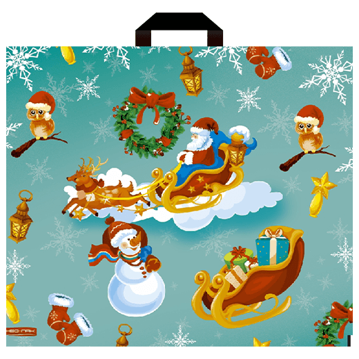 Новогодний пакет с петлевой ручкой 40*42см, 45мк. Используется для упаковки подарков, различных товаров. Продается по 25 штук.