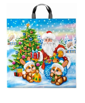 Новогодний пакет с петлевой ручкой 44*44см, 70мк. Используется для упаковки подарков, различных товаров. Продается по 25 штук.