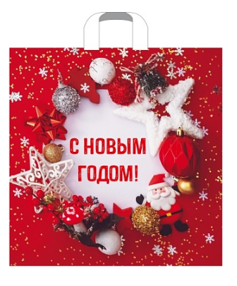 Новогодний пакет с петлевой ручкой 40*42см, 45мк. Используется для упаковки подарков, различных товаров. Продается по 25 штук.