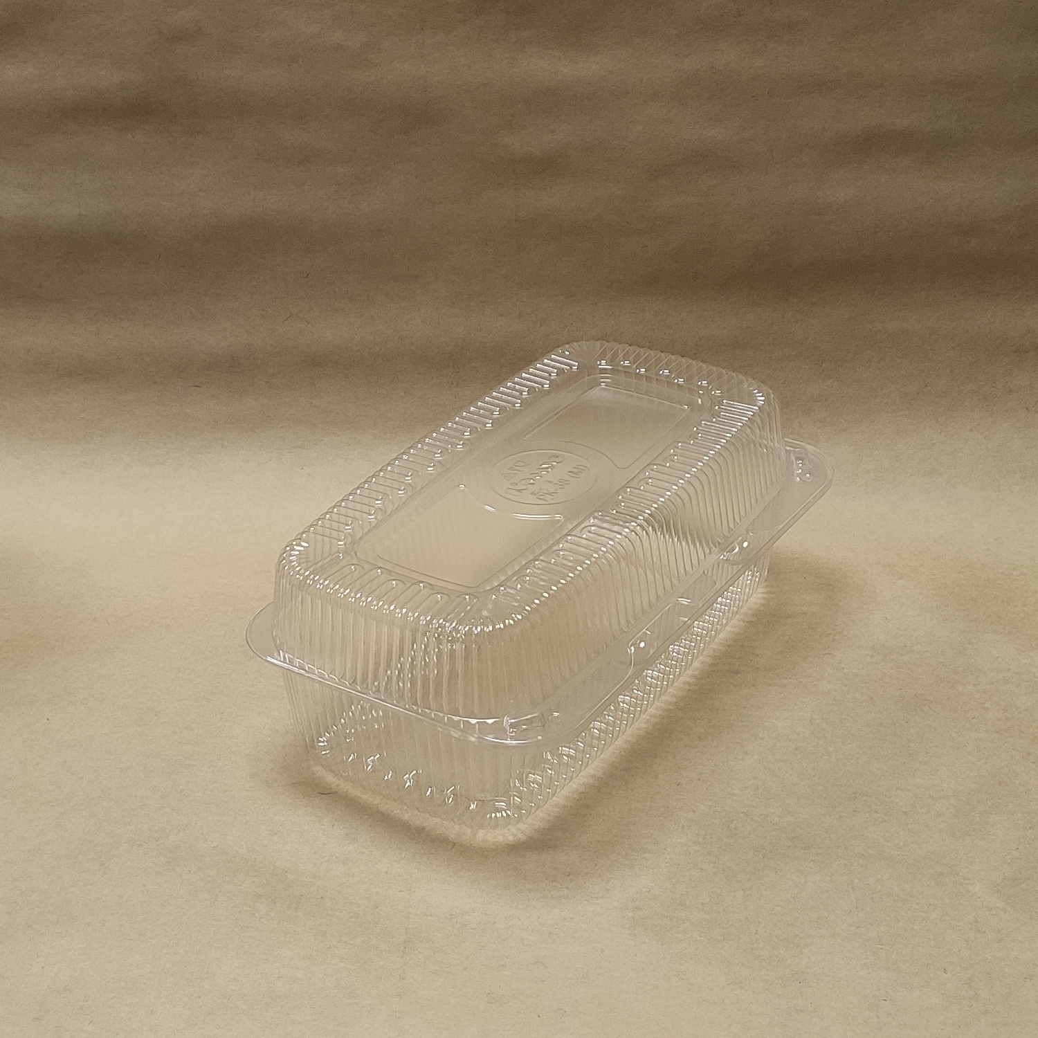 Прозрачный прямоугольный контейнер с совмещенной крышкой предназначен для фасовки кондитерских изделий. В коробе 330 шт.
